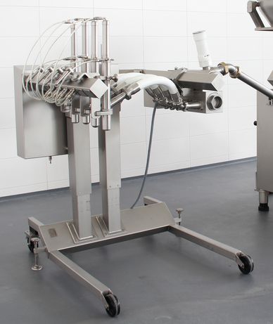Распределители массы, имеющие различные параметры, такие как расстояние до выпускного отверстия, количество полос, калибр и размер кусков, могут использоваться в разных областях производства продуктов питания и кормов для животных. Кроме того, имеется выбор между точечной и непрерывной дозировкой.