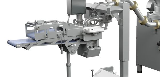 Для бургеров, фрикаделек, цилиндров и трехмерных форм на транспортере с лентой для сплющивания или передаваемых по выбору в системы на воде или кипящем масле, в установки ламинирования или на транспортеры для дальнейшей передачи