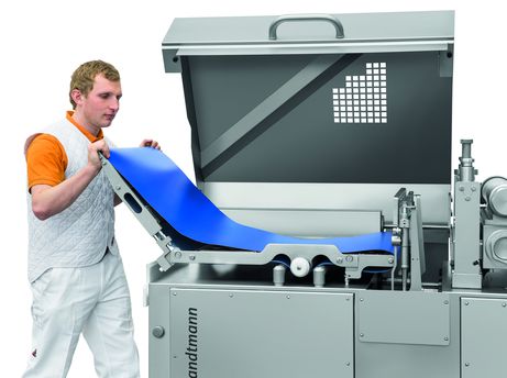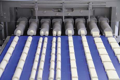 Разделка происходит непосредственно на выходе с помощью струны или ножа по выбору, линейно и непрерывно, со скоростью перемещения продукта. Желаемая форма продуктов создается с помощью форматных деталей на выпуске. Подобная бережная технология способствует получению продуктов первоклассного качества.