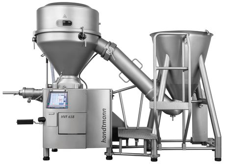Опциональное применение интегрированного оборудования измельчения и набивки с подключением волчка-приставки обеспечивает дополнительную оптимизацию качества при переработке продуктов. Также и для других продуктов с очень твердыми или холодными исходными материалами обеспечены преимущества за счет высокого давления наполнения.