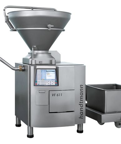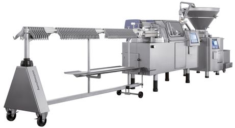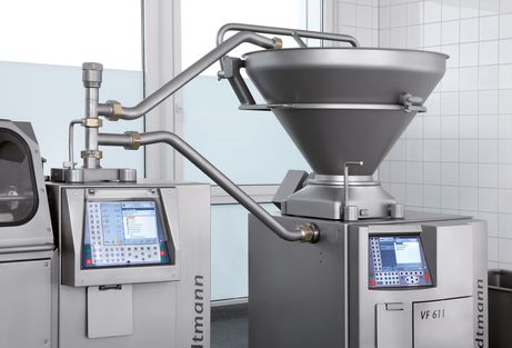На линии производства сосисок FPVLH 242 устройство VF 611 является оптимальным заполняющим насосом для непрерывной подачи.