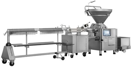 Особые достоинства сосисочной линии PLH 216 проявляются при переработке широкого смешанного ассортимента благодаря простоте и оперативности смены видов продукции. Это относится к сосискам в белковой, коллагеновой, целлюлозной оболочке или в свиной оболочке большого калибра.