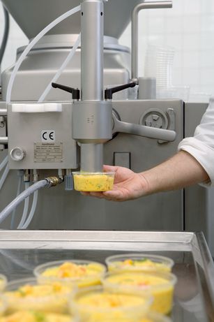 Благодаря механизму подачи лопастного действия Handtmann гарантируется точность порционирования в вакуумном наполнителе. Одновременно обеспечивается первоклассное качество продукции благодаря бережной подаче.