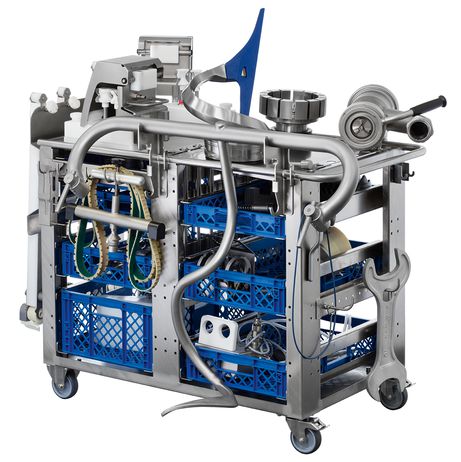 Тележка для деталей, выполненная из высококачественных материалов и соответствующая высоким гигиеническим требованиям, представляет собой отличный вариант для надежного и удобного хранения съемных деталей и оснастки.